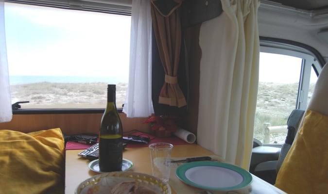 Pour le repas du midi je me suis installé à la pointe de Tamissière, (34) (N 43.283673 -E 3.443098) bien évidemment personne en ce moment…sauf que 15 minutes après mon installation, la police municipale est passée voir qui c’est, « cet interdit de séjour »…Le charme de ma plaque d’immatriculation en 30 aidant, il m’a été rappelé qu’il était interdit d’y stationner et dormir…mais la question ??? où sont les aires d’accueil ou même les campings ouvert en période dite « hors saison »...