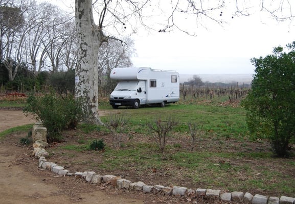 Ce samedi soir j’ai installé « Bubu » chez une viticultrice Florence Guy « France Passion » au Château de Coujan à 4 km de Murviel les Béziers (34). Au cœur des vignes, entourés de paons…