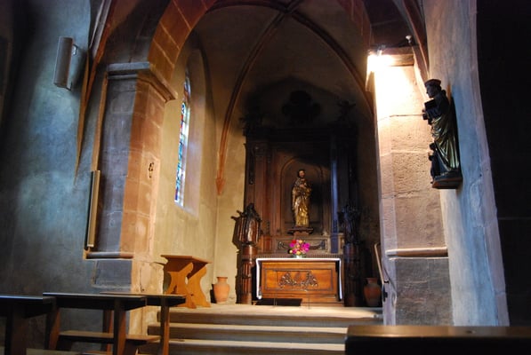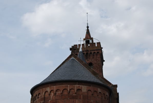Puis ascension jusqu'au Mont Sainte Odile...franchement décevant des bus de touristes et un hôtel de luxe cachant ce qu'il y a à voir, une statue dans un recoin de Ste Odile et direction Obernai et son camping.