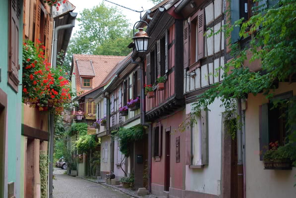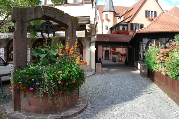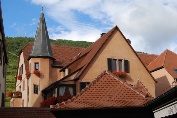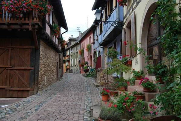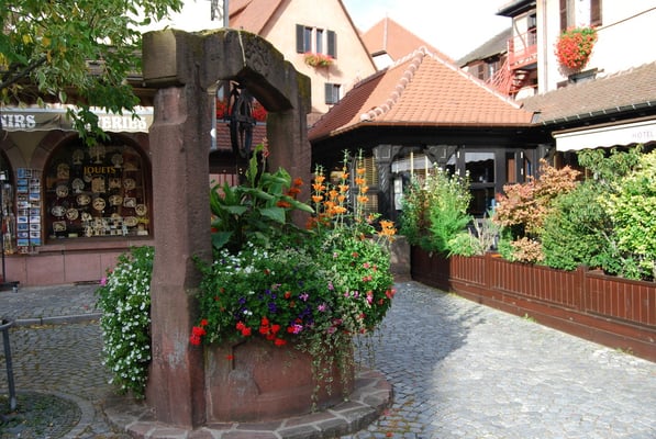 Eguisheim où nous sommes arrivés pour l’heure du déjeuner. Visite de la ville, magnifique.