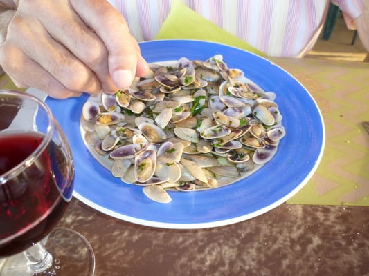 Les entrés tellines, ou moules sauces tomates, mais aussi les escargots de mer avé l’aioli…