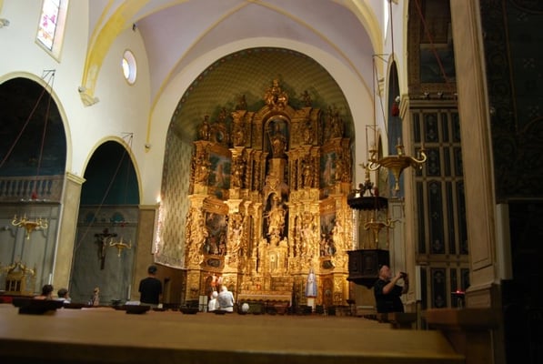 L’intérieur possède une collection de neuf retables sculptés en bois dorés. Le retable du maître-autel a été réalisé par Joseph Sunyer en 1698. Il prend la forme d’un grand triptyque de trois étages occupant tout l’arrière-chœur. Au centre figurent la Vierge de l’Assomption et au sommet le Père Éternel entre la Justice et la Charité. À gauche du chœur, un autre retable de Joseph Sunyer évoque le Saint-Sacrement.