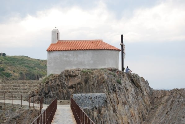 Au départ, le clocher est un ancien phare médiéval, annonçant la position du port de Collioure par des fumées le jour et par des feux la nuit. À la fin du XVIIe siècle, l’église médiévale sur les hauteurs de Collioure fut rasée sur l’ordre de Vauban. Les consuls de Collioure obtinrent tout de même de Vauban l’autorisation de construire une nouvelle église sur les récifs qui ferment la passe. Cette église s’appuie alors contre le phare. Entre-temps, Vauban ne veut plus de port à Collioure, il préfère la baie en eau profonde de Port-Vendres. Du fait, Collioure n’a plus besoin d’un phare. Il devient dès lors le clocher de l’église. Mais, ce n’est que 100 ans plus tard, vers 1809, qu’une décision municipale est prise pour le couvrir d’une coupole en s’inspirant d’un modèle originaire de Toscane.