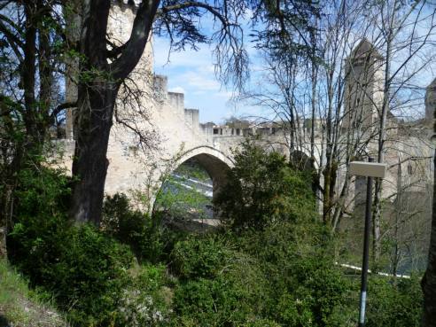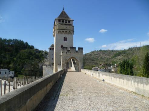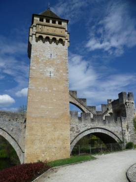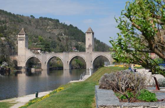 repas sous un soleil et une température printanière sur un parking bus au pied du célèbre « pont Valentré » de Cahors.