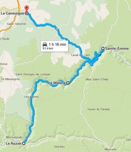 Moi j’ai choisi de me diriger vers cette ville étape qui sait très bien nous accueillir : La Canourgue – Parking de 50 places à deux pas de la ville.