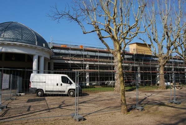 Ballade dans le parc thermal vide en cette saison et en plein travaux mais cette station ne m’inspirerait pas car partout on se sent plus au Club Med que dans une station thermale.