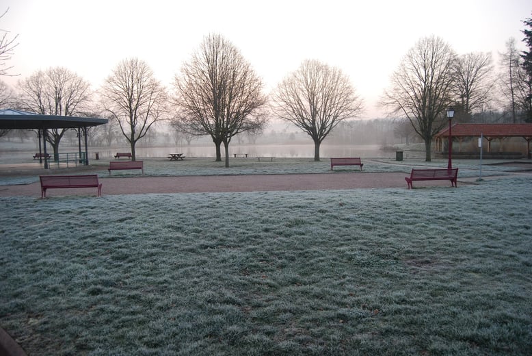 Ce matin le thermomètre affiche - 3 mais le soleil pointe son nez magnifique paysage givré au bord du lac des Récolets