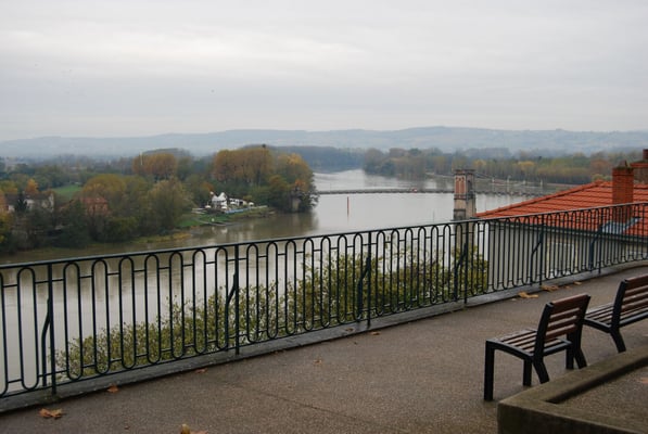 Arrivé au château sur la place des marronniers vous admirez l'incroyable vue sur l'Ain, et aurez peut-être la chance de contempler au lointain les cimes enneigées du Mont Blanc.