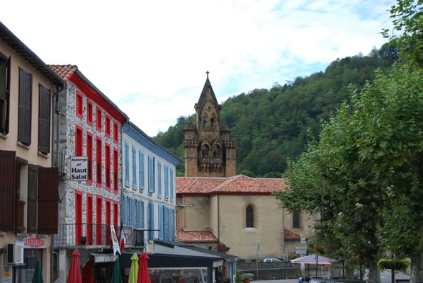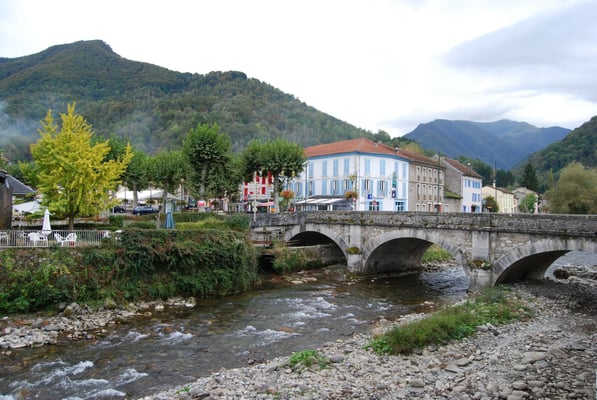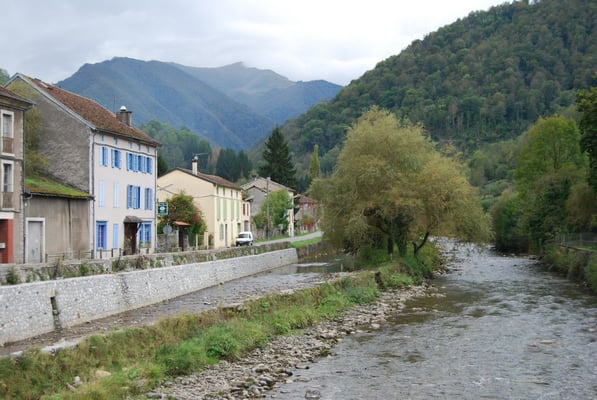 Village typique des montagnes Ariégeoises, traversé par le Salat.
