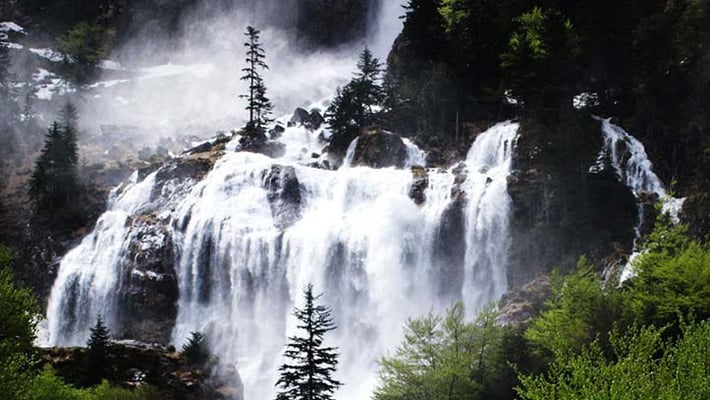 Situé au départ du village d'Aulus les Bains, la Cascade d'Ars est un site remarquable de la chaine pyrénéenne.