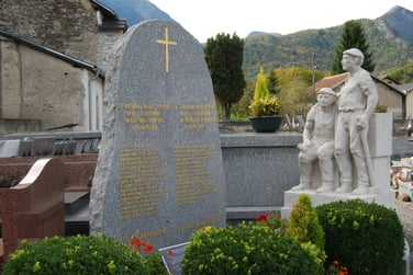 ….Ensemble, comme au temps ou ils travaillaient là haut, sur les flancs de la montagne, ils reposent encore presque tous dans le petit cimetière de Vicdessos, à l'ombre du clocher de la vieille église…Pour que l'aluminium jaillisse des fonderies des Usines d'Auzat, pour que la roche se reflète a jamais dans les eaux bleues du lac qu'ils ont laissé derrière eux….