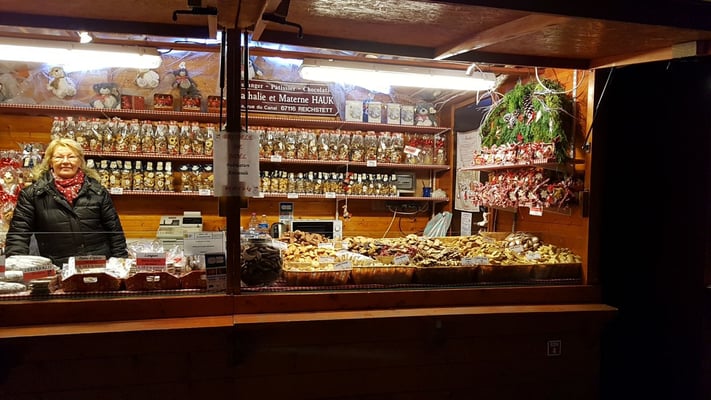 Des maisonnettes en bois servent de décor aux 1001 savoir-faire des artisans alsaciens. Des crèches sculptées, des couronnes de l'Avent, des livres, des confitures, des bijoux,... autant de produits que vous pourrez offrir pour faire plaisir
