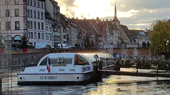 Nous avons fait la croisière en bateau pour la visite guidée sur l'Ill   de la limite Petite France jusqu'au parlement Européen.
