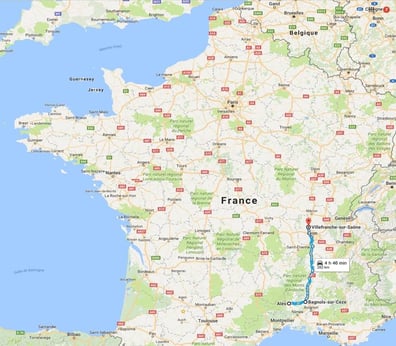 Entre mon départ ce matin de Villefranche sur Saône j’ai traversé une zone de turbulence…Brouillard, pluie fine mais aussi sévère, un fort vent de côté…heureusement qu’a partir de Tournus le beau temps a réapparu.
