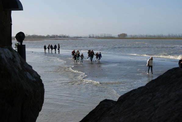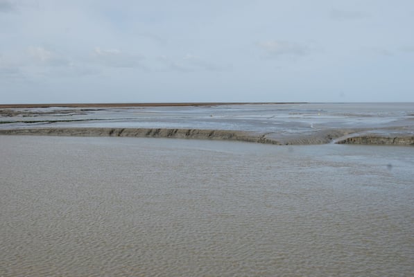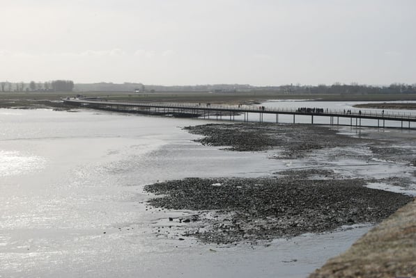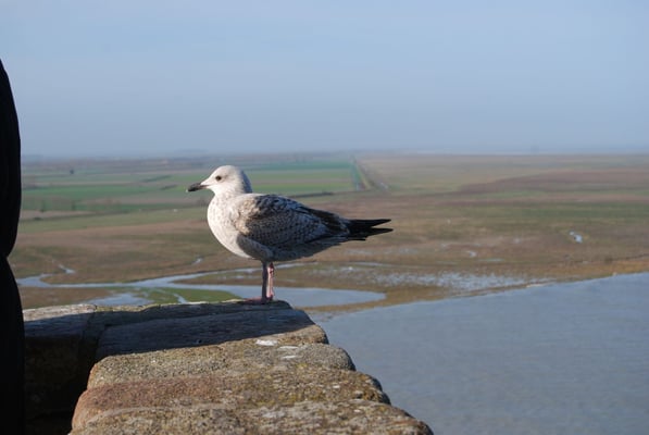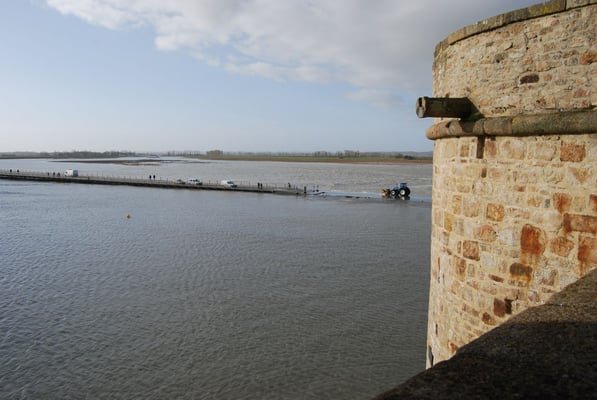 A la descente de la navette je suis arrivé en pleine marée haute il fallait marcher un peu dans l’eau qui recouvrait la digue…pour accéder à cette ile à marée haute.