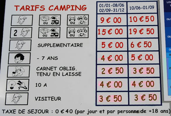 Tarif : 2017 - Services : 2 à 21 € - Vidange et eau : 2 €