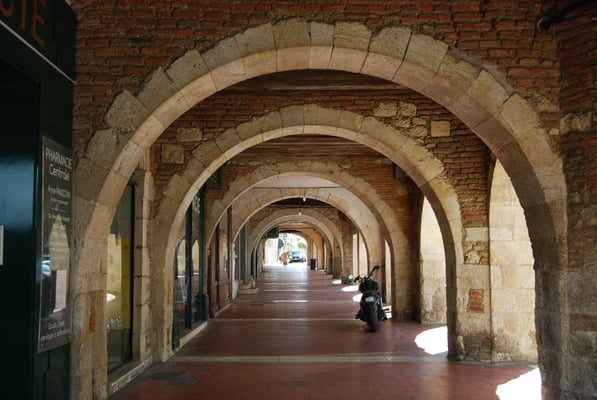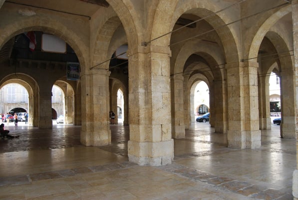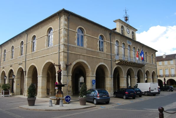 L'Hôtel de ville, les arcades et les 4 fontaines