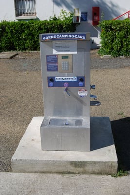 Stationnement, eau : 8 € - Electricité : 4 € - Paiement carte bancaire - Type de borne : Artisanale