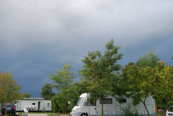 Vue la météo exécrable il pleut je me suis refugié dans un petit camping au milieu des Dombes « Le Large » 12 € la nuit avec électricité…et piscine !