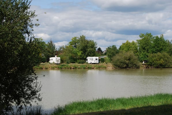 Installation sur l'aire CC d'Amboise avec une petite pluie fine qui a le charme de rafraîchir le climat , 14° en moins par rapport à hier...24° quand même !