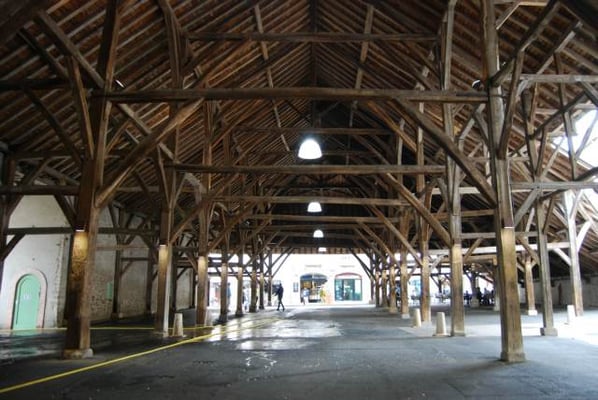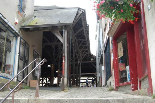 La dernière opération de datation de l'abattage des bois survenue en 2016 donne la date de 1376/77. Les halles sont érigées sur la place du marché attestée ici depuis guillaume de Clisson au siècle précédent (XIII), Clisson ville des Marches de Bretagne est aussi une ville de marchés importants à la croisée de trois anciennes provinces : Bretagne, Anjou et Poitou. Il y avait avant la révolution une maison du Minage sise la place du même nom, qui percevait les taxes sur les céréales entrant au marché. Le bas des Halles abritait comme c'était souvent le cas une cour de justice. Abri logistique pendant les guerres de Vendée elles furent miraculeusement épargnées par les "Illuminations" républicaines, conservées puis restaurées. De nos jours, elles abritent le grand marché du vendredi toute l’année et font battre le coeur de la ville pendant les animations