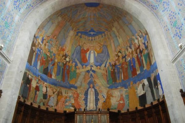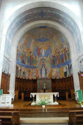 Edifiée sur l’emplacement de l’ancienne Collegiale, c’est une église entièrement refaite au XIX selon 2 modèles Italiens. Ce classement original est dû à son campanile de style toscan, qui constitue la touche finale du Paysage Italien dans la ville et à son corps de bâtiment , inspiré d’une basilique de Rome, qui lui confère un caractère particulier magnifié par une remarquable fresque de 1930.