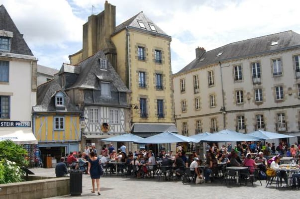 Quel plaisir de flâner dans les ruelles du vieux Quimper ! Maisons à colombages et encorbellements se penchent vers les venelles aux noms évocateurs, indiquées par les flèches de la cathédrale Saint-Corentin. En jouant à saute-mouton sur les passerelles de l'Odet, votre balade se poursuit dans un décor verdoyant.