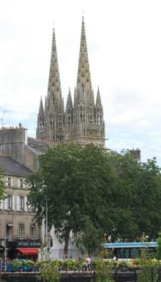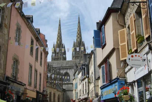 Kemper (confluent) s'épanouit au croisement du Steir et de l'Odet. Le roi Gradlon, fuyant la ville d'Ys engloutie par les flots, en aurait fait la capitale de Cornouaille. Les Romains développèrent la vocation commerciale de la cité. Au 13e s., les corporations s'installent au pied de la cathédrale en construction. Des riches émissaires du roi de France confirment l'essor de la ville et bâtissent des hôtels particuliers. Depuis, la ville s'étend noblement le long de ses quais fleuris.