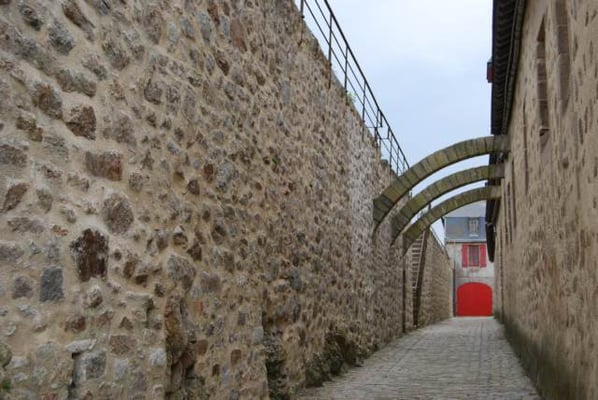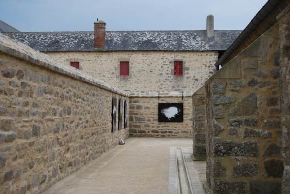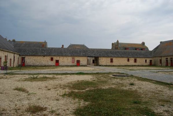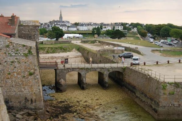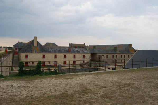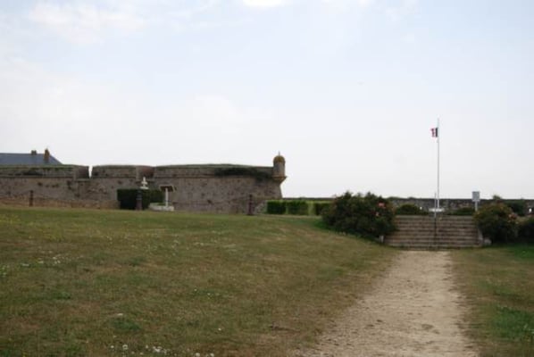 Des pâtis, ancienne place d’arme, une porte trouant les remparts rejoint l’agréable plage des Grands-Sables.
