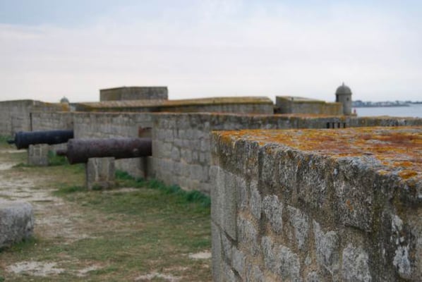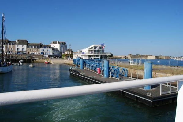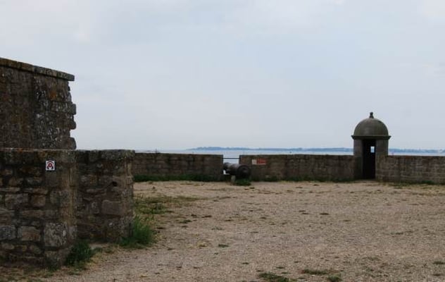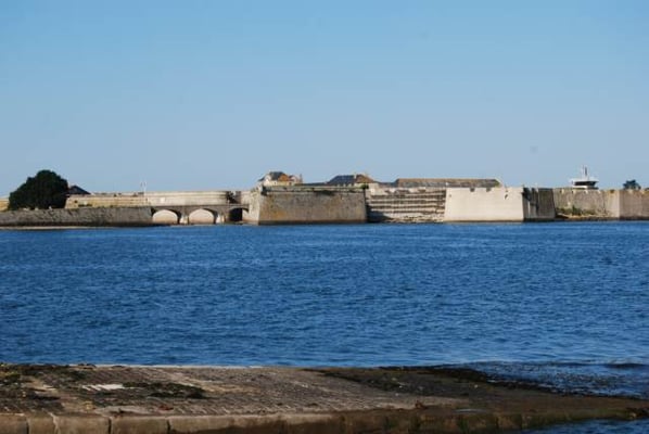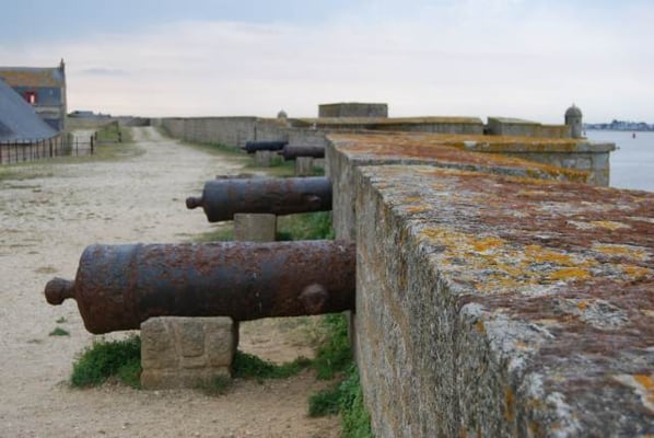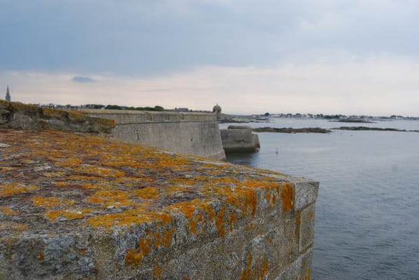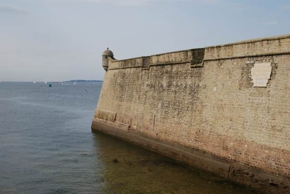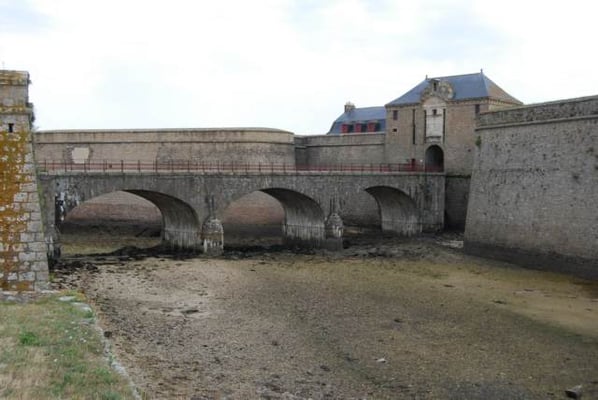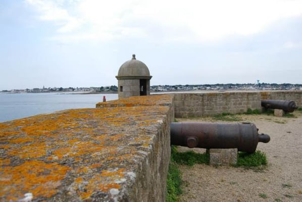 De ses origines, la citadelle garde deux bastions à l’allure ibérique. On y accède en franchissant un petit pont et en traversant la demi-lune, ouvrage défensif en triangle. Sur le chemin de ronde festonné de verdure, de silencieux canons restent tournés vers l’ île de Groix. Aujourd’hui, les regards s’orientent plus pacifiquement vers la pointe de Gâvres.