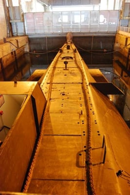 Depuis qu’il a été désarmé et cédé à la Ville de Saint-Nazaire, il y a trente ans, l’Espadon est amarré dans l’écluse fortifiée du port de Saint-Nazaire. Vous allez le parcourir d’un bout à l’autre, le long de la coursive principale -bien étroite par endroits- et découvrir un patrimoine maritime exceptionnel.
