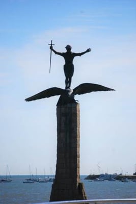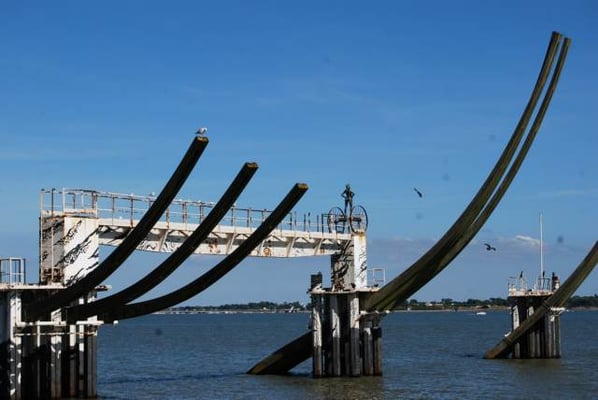 Ce monument, réalisé en 1989 par le sculpteur Jean-Claude Mayo, est situé sur l'ancien emplacement de l'embarcadère du bac qui traversait l’estuaire, avant la construction du pont routier. Son oeuvre se compose de parties en bois pouvant suggérer les membrures d'un vaisseau négrier, et de trois personnages en bronze soulignant les étapes de l’abolition de l’esclavage.