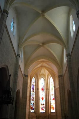 A partir de la fin du XIIIe siècle, l'abside et le massif occidental complètent ce vaisseau en employant le style gothique, qui pénètre dans le Midi à la suite de la Croisade contre les Albigeois. L'architecture intérieure est complétée par un décor peint, dont de riches vestiges de la fin du XIIIe siècle subsistent sous la coupole ouest et le massif occidental. Le cloître roman est remplacé au XVIe siècle par un nouveau cloître de style gothique flamboyant, au décor foisonnant de feuilles de choux et de chardons.