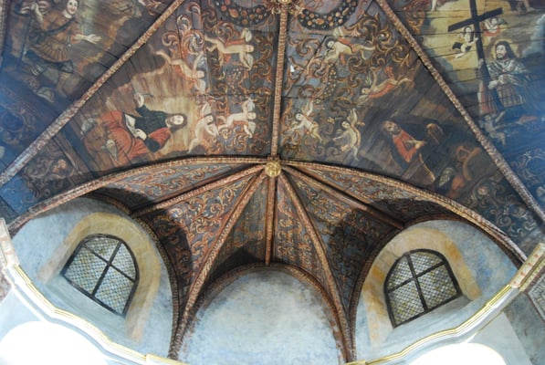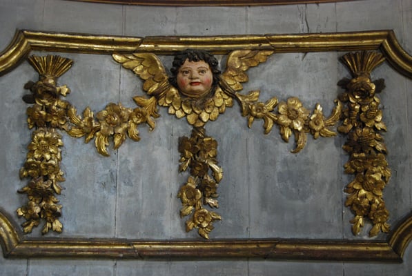 L'extérieur de cette chapelle baroque, construite au XVIIème siècle, conserve une grande simplicité : taille modeste, plan en forme de croix grecque, façade classique, curieux clocheton double. Elle n'en surprend pas moins par la profusion de son décor intérieur! Décorée d'un plafond peint et de tableaux au XVIIIème siècle, la chapelle abrite un rétable en bois sculpté (XVIIIème siècle), doré à la feuille, représentant des scènes de la Passion et de la vie du Christ. La voûte en bois, peinte de couleurs très vives et dans un style naïf, fait référence au culte de la Croix.