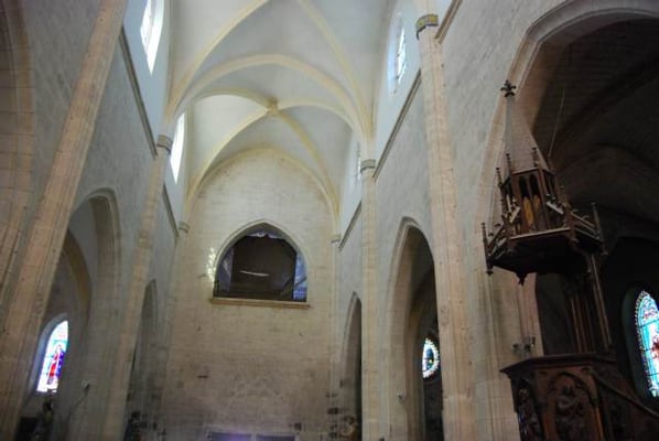 La décoration et l'aménagement intérieur sont repris aux XVIIe et XVIIIe siècles dans le cadre du mouvement de la Contre-Réforme : le retable baroque de la chapelle profonde, l'orgue, la tribune des chanoines et la chaire à prêcher en sont les éléments marquants.