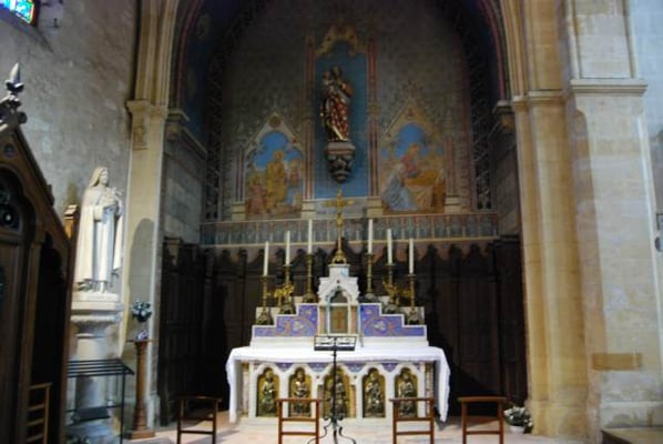 Le maître-autel est consacré à Marie-Immaculée. Il possède dans une boîte de plomb scellée, les reliques des trois Saint martyrs : Placide, Vincent et Modeste.