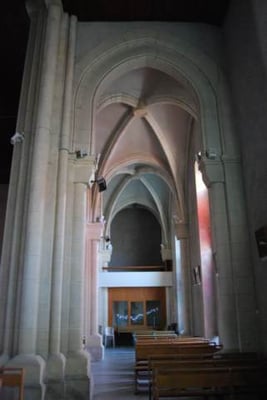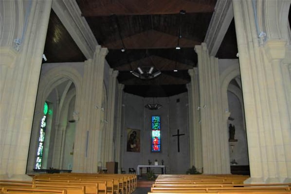 construite en 1860. Elle a été restaurée pour éviter l'effondrement des voûtes et a été inaugurée en 1962. De nouveaux vitraux dus à un artiste de Karlsruhe Emil Wachter (de) sont commandés en 1967. Ils ont été mis en place par le père Louis Franchéo. Ces vitraux sont polychromes dont un bleu vif dit « bleu de Miramont ».