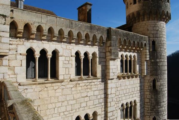 Fièrement dressé sur une aiguille rocheuse, le château de Bonaguil (" la bonne aiguille ") domine depuis huit siècles la vallée et le village médiéval, position stratégique pour contrôler les frontières entre le Quercy, l'Agenais et le Périgord. Cette magnifique forteresse mêle dans son architecture les systèmes de défense du Moyen Âge (murs épais, fossés...) aux premiers éléments décoratifs et de confort de la Renaissance (fenêtres à meneaux, système de latrines intra-murosproche de notre tout-à-l'égout, belles cheminées...).