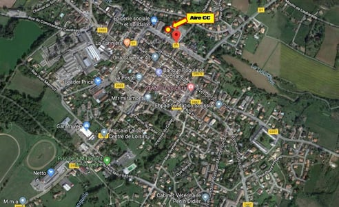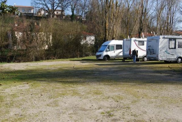 Déjà l’aire est gratuite mais fermé par une barrière, il faut montrer patte blanche pour y rentrer soit se rendre en Mairie aux heures d’ouverture avec la carte grise du véhicule afin d’avoir le code d’accès…Soit en dehors des heures d’ouverture téléphoner et la un employé communal vient vous voir et vous délivrer le code…