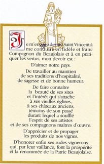 L’intronisation est un acte solennel par lequel on s’engage devant Saint Vincent à se conduire en fidèle et franc compagnon du Beaujolais et à en pratiquer les vertus.