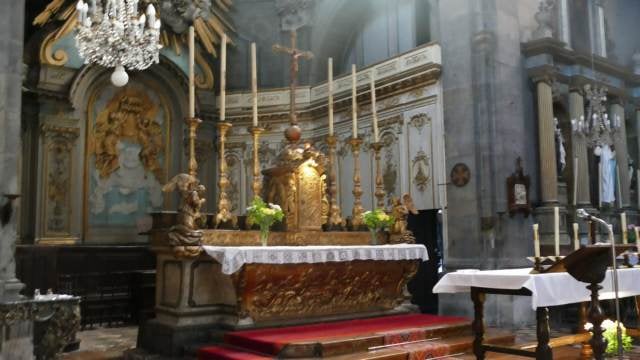 fondée au vie siècle, est reconstruite de 1711 à 1714 avec une façade de style jésuite surmontée d'un carillon.