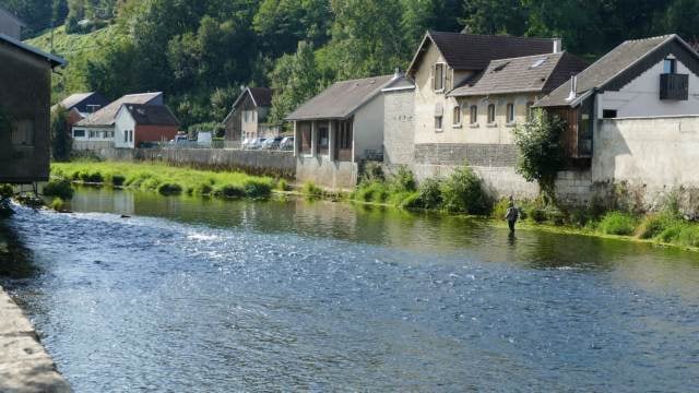 La Loue ne jaillit qu'à quelques kilomètres de là, et pourtant elle traverse le village avec l'assurance d'une vraie rivière. Résurgence, elle est alimentée, comme beaucoup d'autres rivières de la region, par le Doubs et le mystère de ses divagations souterraines.