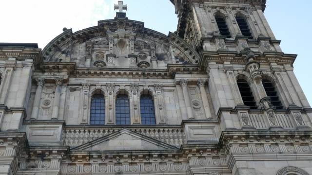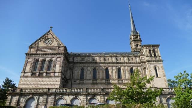 La première pierre fut posée en juillet 1850 et la nef centrale ouverte au culte en 1866. À la mort du cardinal Mathieu, en 1875, elle n'était toujours pas achevée. Jean Frédéric Fallot choisit le style néo-Renaissance, un style gorgé d'ornementations, de frises et de sculptures. Il laissa aussi transparaître sa foi protestante en construisant une très large tribune au-dessus des bas-côtés, comme dans les temples réformés.