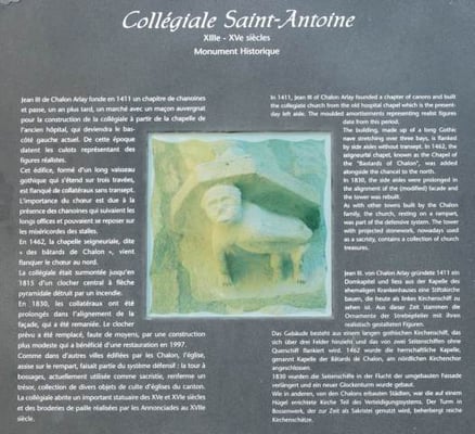 La collégiale Saint Antoine recèle un trésor peu commun : des devants d’autels, des chasubles (non visibles) brodés à orfroi à la paille de froment et non au fil d’or. Cette matière basique rendue noble par la dextérité des petites mains de religieuses au XVIIe siècle.