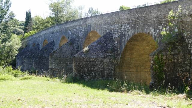 Le Pont "Charles Martel", pont roman classé aux Monuments Historiques. A du faire plusieurs fois l'objet de travaux en raison des crues de la Cèze et de la circulation.