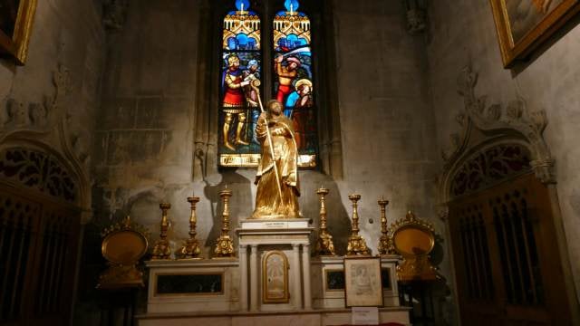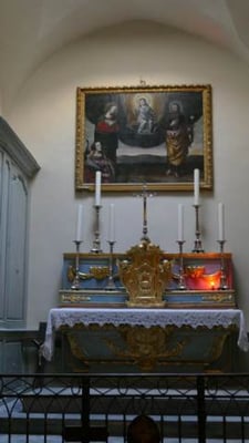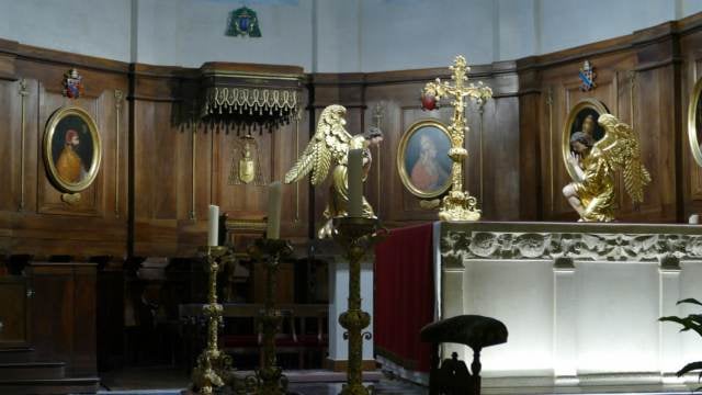 Dans l'ancien chœur, à l'extérieur de l'église actuelle, on trouve une table d'autel et un remarquable escalier à vis avec une voûte annulaire.