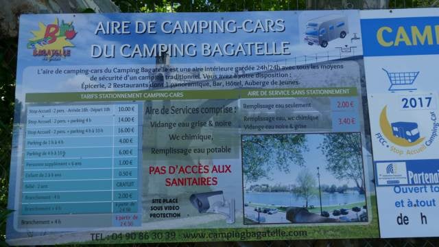 Services seuls pour camping-cars de passage : 4 à 6 €