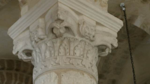 La croisée du transept a conservé un décor roman qui puise son iconographie dans un répertoire ornemental très varié.