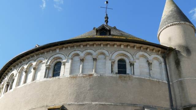 Le chevet de l'église Notre-Dame à abside et absidioles possède un décor sculpté plus sobre que celui de Saint-Pierre mais qui n'est pas de moindre qualité. Il est de style roman. Il présente des modillons sur la corniche et des colonnes aux chapiteaux intéressants.