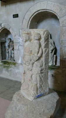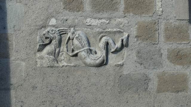 Près du chœur, deux chapiteaux remarquables représentent la tentation d'Adam et d'Ève et des griffons affrontés.
